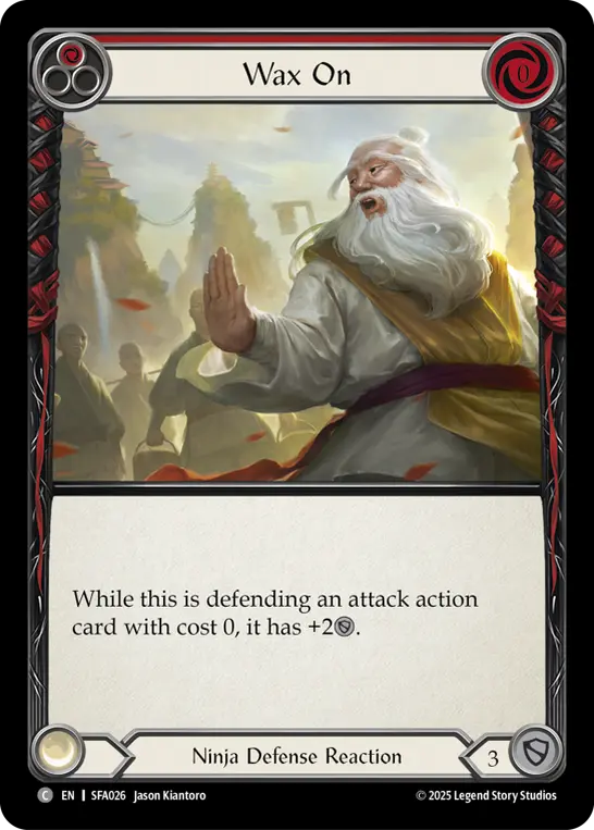 While Wax On is defending an attack action card with cost 0, it gains +2{d}.