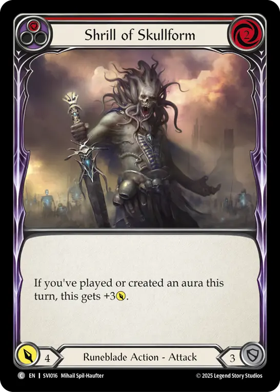 If you have played or created an aura this turn, Shrill of Skullform gains +3{p}.