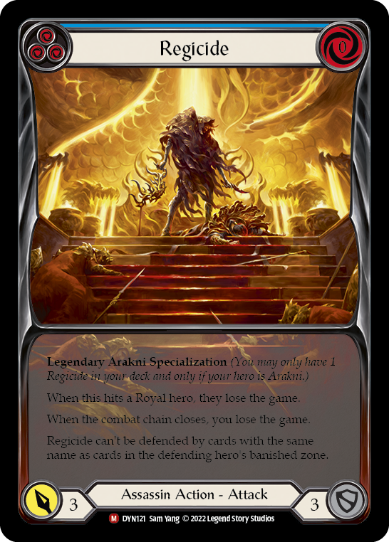 Regicide can't be defended by cards with the same name as cards in the defending hero's banished zone.