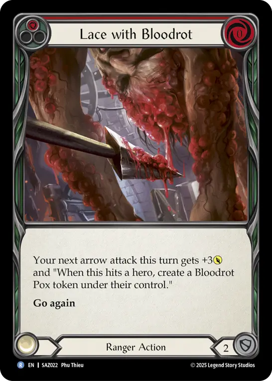 Your next arrow attack this turn gains +3{p} and "When this hits a hero, create a Bloodrot Pox token under their control."
