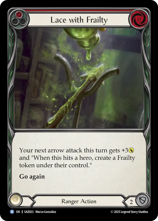Your next arrow attack this turn gains +3{p} and "When this hits a hero, create a Frailty token under their control."