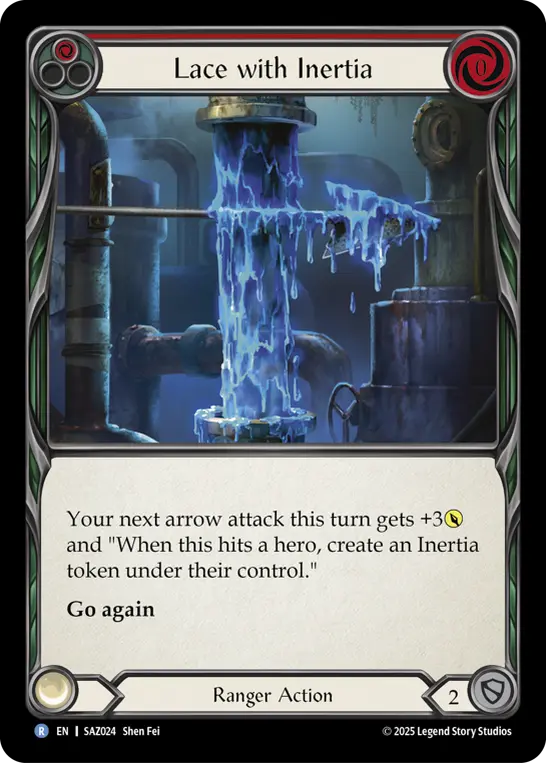 Your next arrow attack this turn gains +3{p} and "When this hits a hero, create an Inertia token under their control."