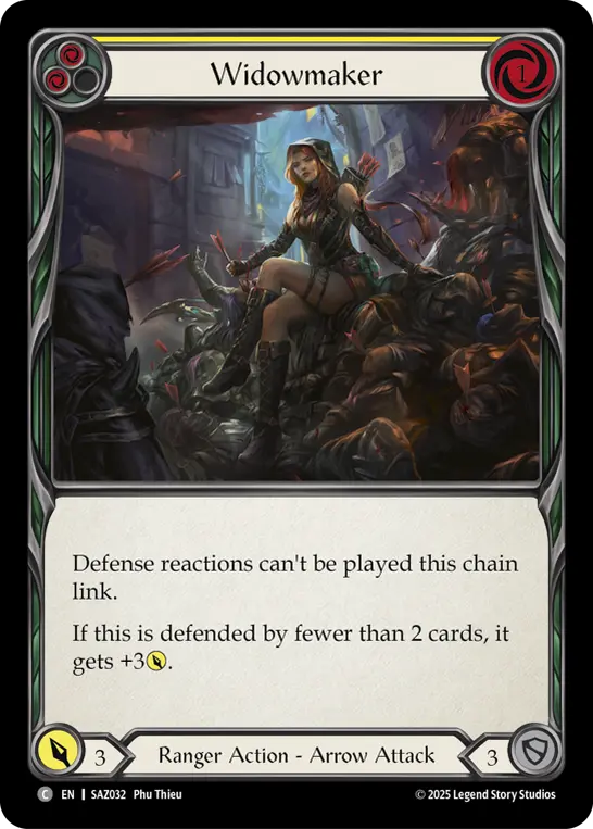 If Widowmaker is defended by fewer than 2 cards, it has +3{p}.