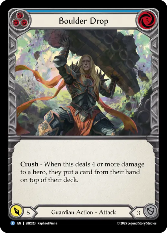 Crush - When this deals 4 or more damage to a hero, they put a card from their hand on top of their deck.