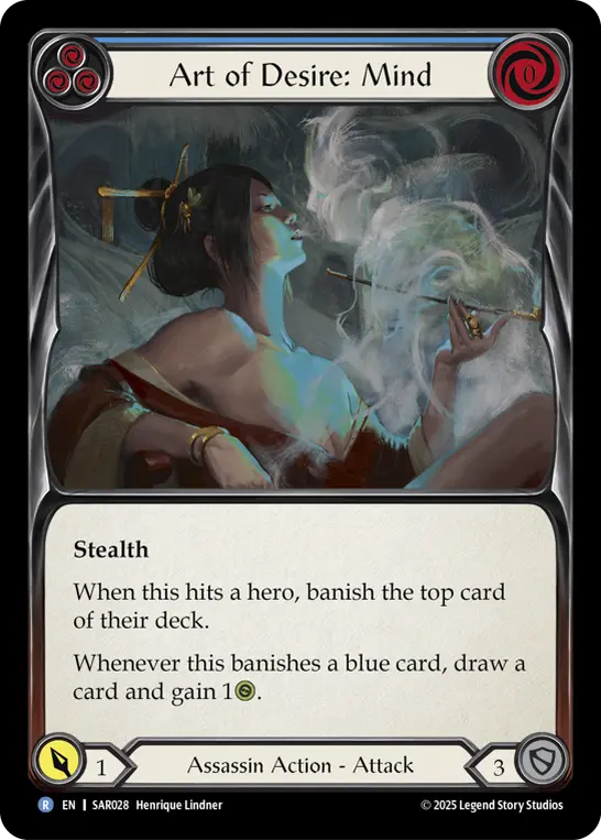 Whenever this banishes a blue card, draw a card and gain 1{h}.