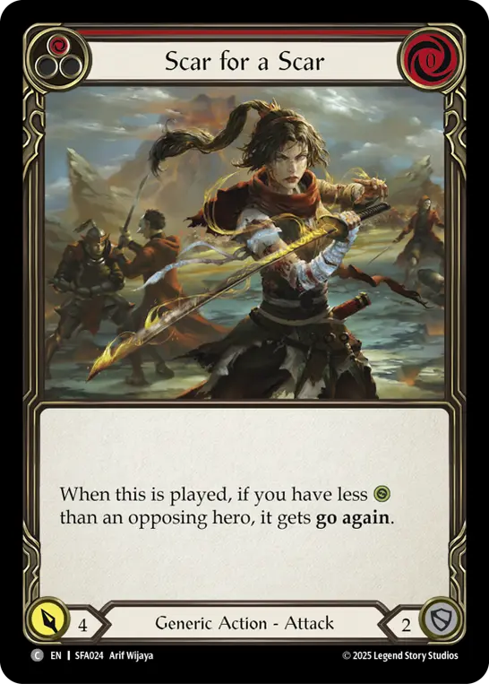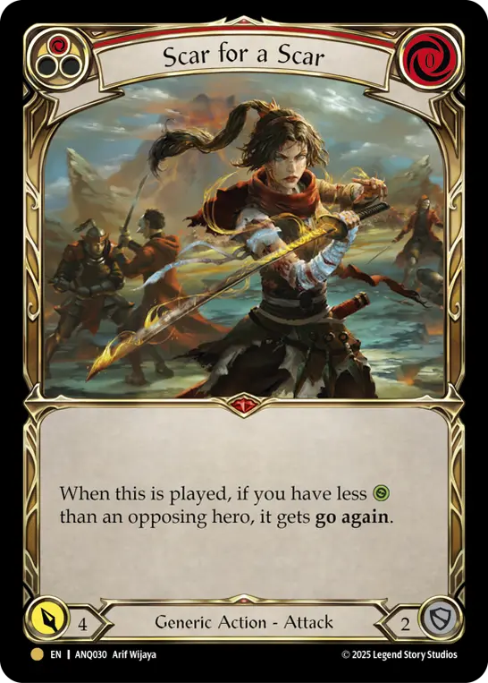 When this is played, if you have less {h} than an opposing hero, it gets go again.
