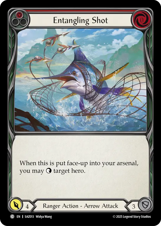 When this is put face-up into your arsenal, you may {t} target hero.