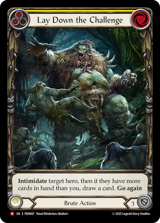Intimidate target hero, then if they have more cards in hand than you, draw a card.