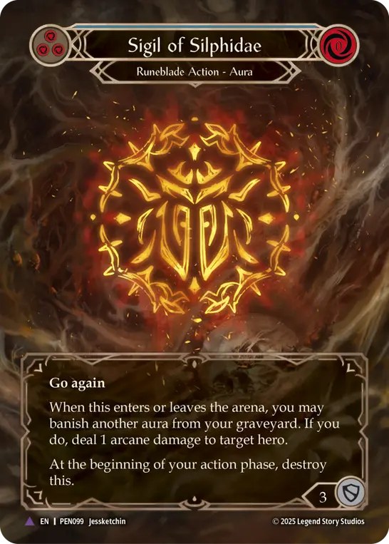 When this enters or leaves the arena, you may banish another aura from your graveyard. If you do, deal 1 arcane damage to target hero.