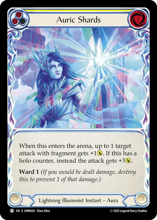 When this enters the arena, up to 1 target attack with fragment gets +1{p}. If this has a holo counter, instead the attack gets +3{p}.