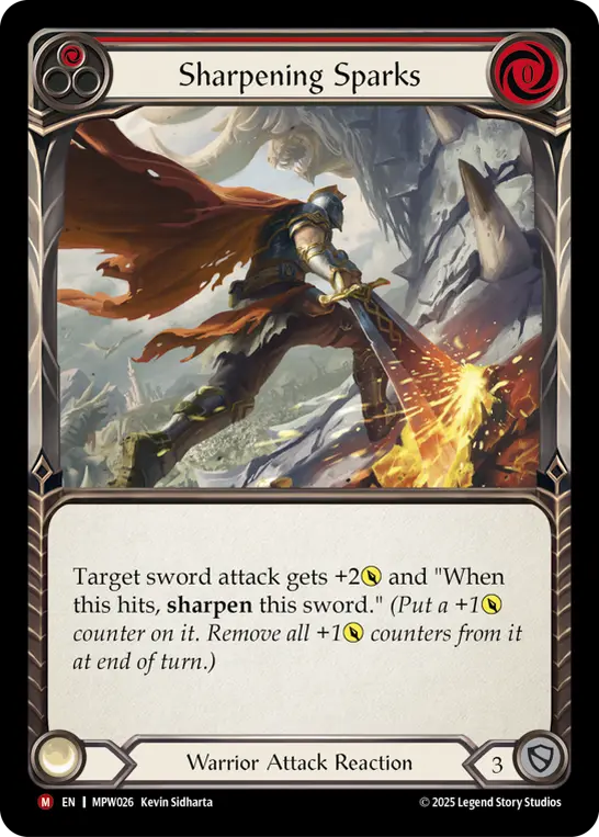 Target sword attack gets +2{p} and "When this hits, sharpen this sword."