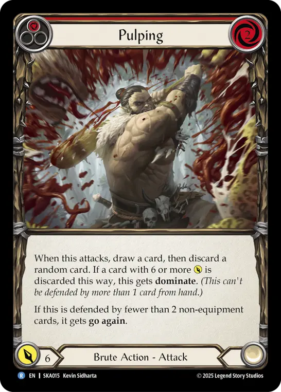 When this attacks, draw a card then discard a random card. If a card with 6 or more {p} is discarded this way, this gets dominate.